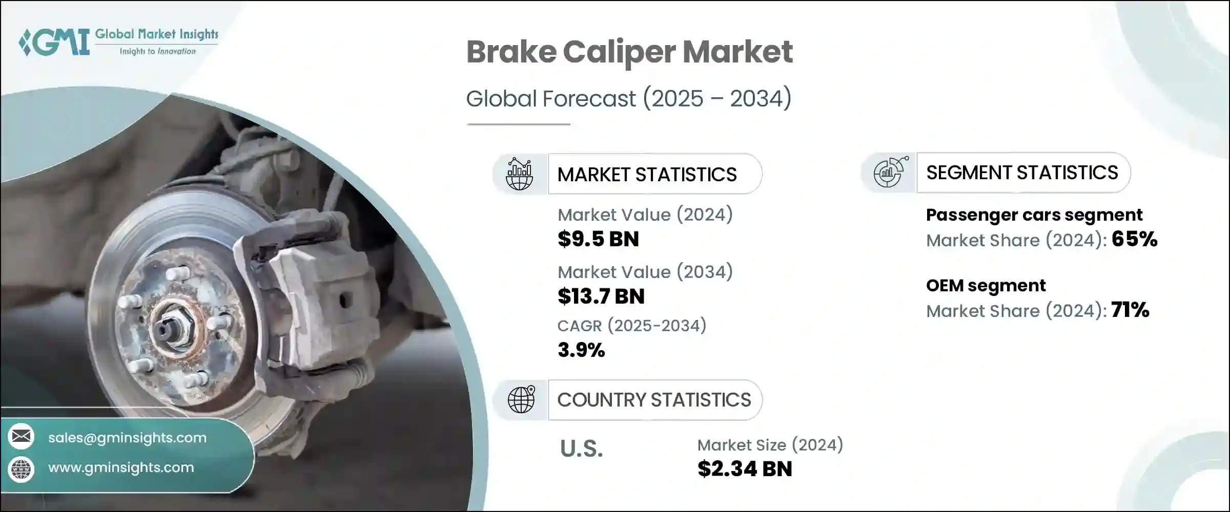 The global brake caliper market size was estimated at USD 9.5 billion in 2024. The market is expected to grow from USD 9.7 billion in 2025 to USD 13.7 billion in 2034, at a CAGR of 3.9%.