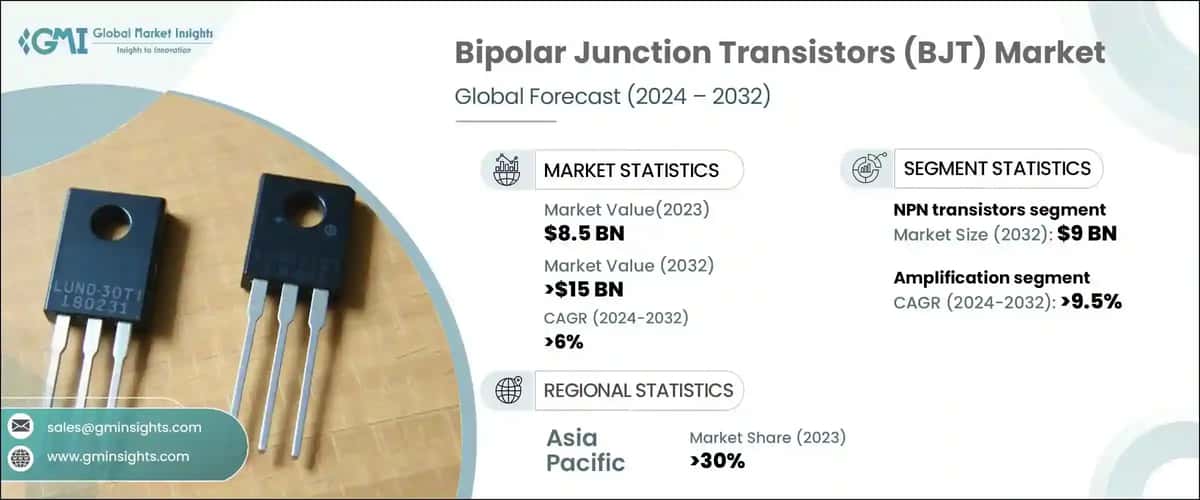 The global bipolar junction transistors market was valued at USD 8.5 billion in 2023 and is expected to grow at a CAGR of over 6% between 2024 and 2032.