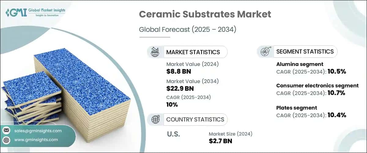 The global ceramic substrates market was valued at USD 8.8 billion in 2024 and is estimated to grow at a CAGR of over 10% from 2025 to 2034.