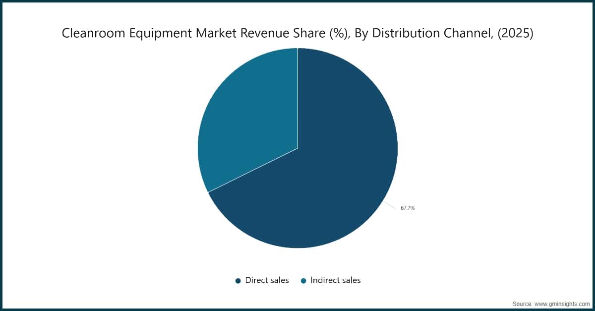 Based on distribution channel of cleanroom equipment market consists of direct and indirect sales. The direct sales channel emerged as leader and held 67.7% of the total market share in 2025 and is anticipated to grow at a CAGR of 7.2% from 2026 to 2035.