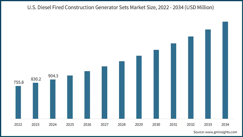 According to a recent study by Global Market Insights Inc., the diesel fired construction generator sets market was estimated at USD 6.3 billion in 2024. The market is expected to grow from USD 6.9 billion in 2025 to USD 14.5 billion by 2034, at a CAGR of 8.7%.
