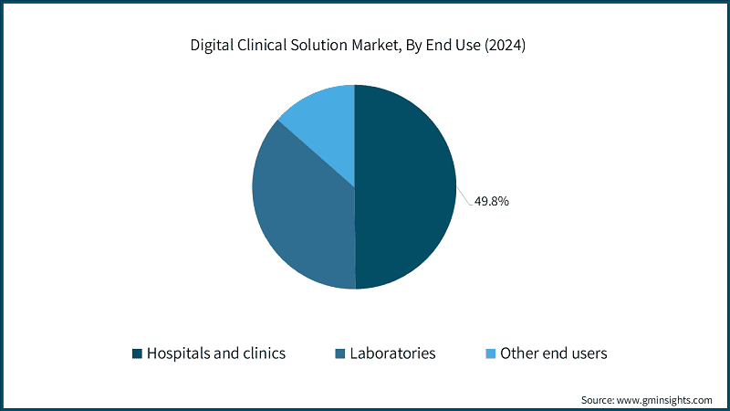 Based on end use, the digital clinical solution market is categorized into hospitals and clinics, laboratories, and other end users. Among these, the hospitals and clinics segment accounts for 49.8% of the total market share. The growth is projected to continue, with the segment expected to reach USD 12.6 billion by 2034.