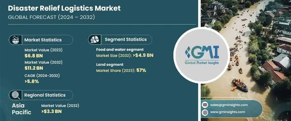 Disaster Relief Logistics Market was valued at USD 6.8 billion in 2023 and is projected to grow at a CAGR of over 5.8% between 2023 and 2032. The market is experiencing significant growth due to the increasing frequency and severity of natural disasters, such as hurricanes, earthquakes, floods, and wildfires. Climate change has increased these events, leading to a greater need for efficient and rapid response logistics.