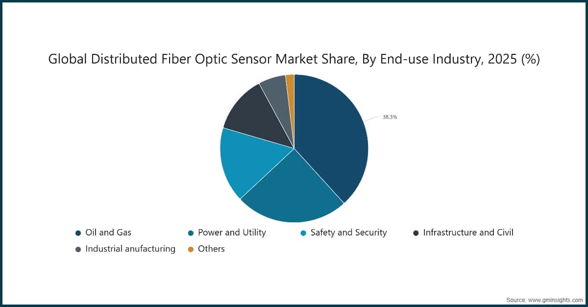 Based on the end-use industry, distributed fiber optic sensor market is classified into oil and gas, power and utility, safety and security, infrastructure and civil, industrial manufacturing, and others.