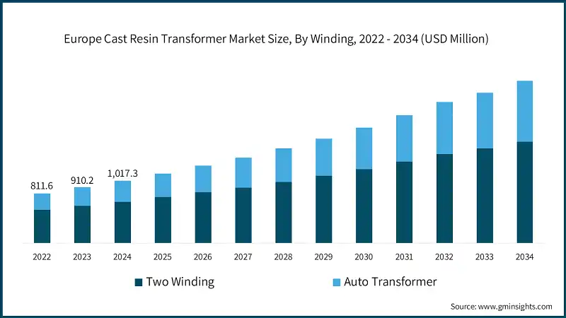 Europe Cast Resin Transformer Market Size - By Winding, By Rating, By Application, Growth Forecast, 2025 - 2034