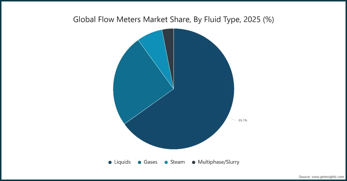 Based on the fluid type, flow meters market is classified into liquids, gases, steam, and multiphase/slurry.