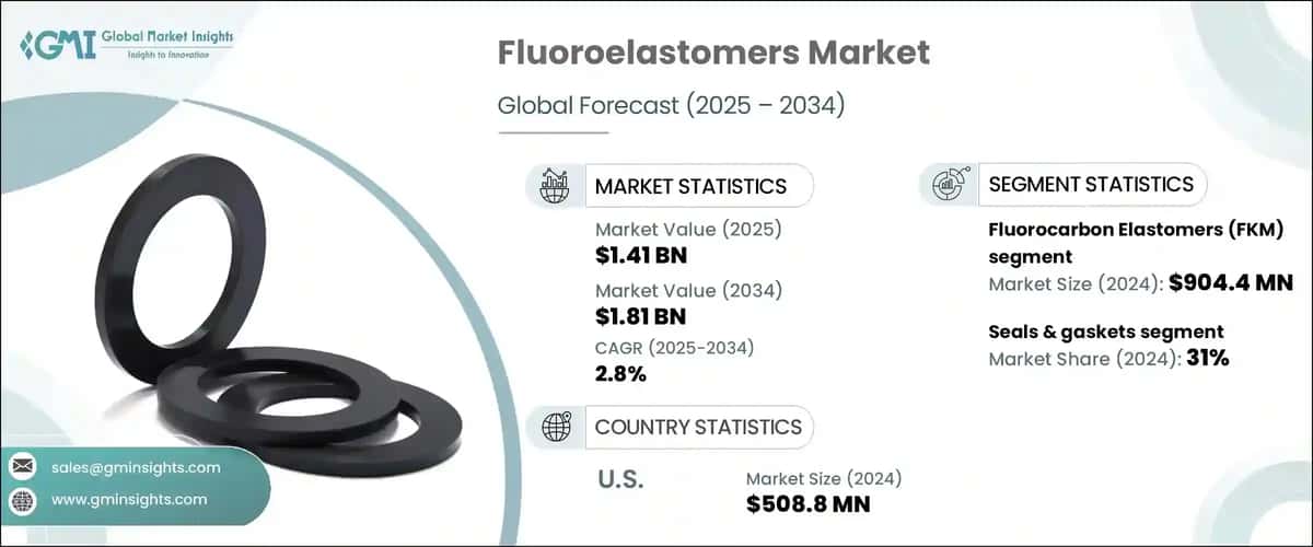 The global fluoroelastomers market was valued at USD 1.41 billion in 2024 and is estimated to grow at a CAGR of over 2.8% from 2025 to 2034.