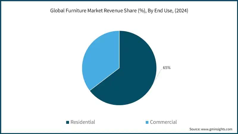 According to the end user, the furniture market is segmented into residential and commercial. Residential made up 65% of the market in 2024, due to increased demand for artistic wooden furniture across the globe.