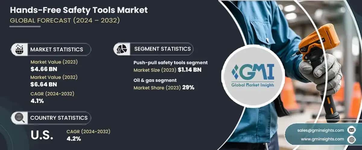 The global Hands-Free Safety Tools market was valued at USD 4.66 billion in 2023 and is estimated to grow at a CAGR of over 4.1% from 2024 to 2032.