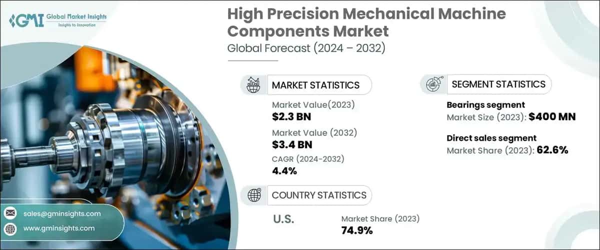 The high precision mechanical machine components market was valued at USD 2.3 billion in 2023 and is estimated to grow at a CAGR of 4.4% during 2024 to 2032, due to advancements in manufacturing technologies, increased demand for precision in critical applications, and the expansion of industrial automation. Firstly, technologies like CNC machining and 3D printing now allow manufacturers to produce highly precise components with minimal errors. This level of precision is crucial in industries such as aerospace, automotive, and medical devices, where tight tolerances are essential.