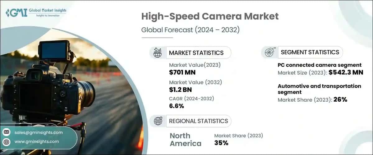 The global high-speed camera market size was valued at USD 701 million in 2023 and is estimated to grow at a CAGR of over 6.6% from 2024 to 2032. High-speed cameras are crucial in scientific research and development. Industries like aerospace, automotive, and materials science use high-speed imaging to analyze dynamic events, helping engineers and scientists understand complex phenomena. For instance, in 2023 the U.S. National Science Foundation (NSF) boosted its efforts to drive discoveries across various scientific fields. NSF's strategic investments led to significant advancements in science, technology, and innovation in the U.S.