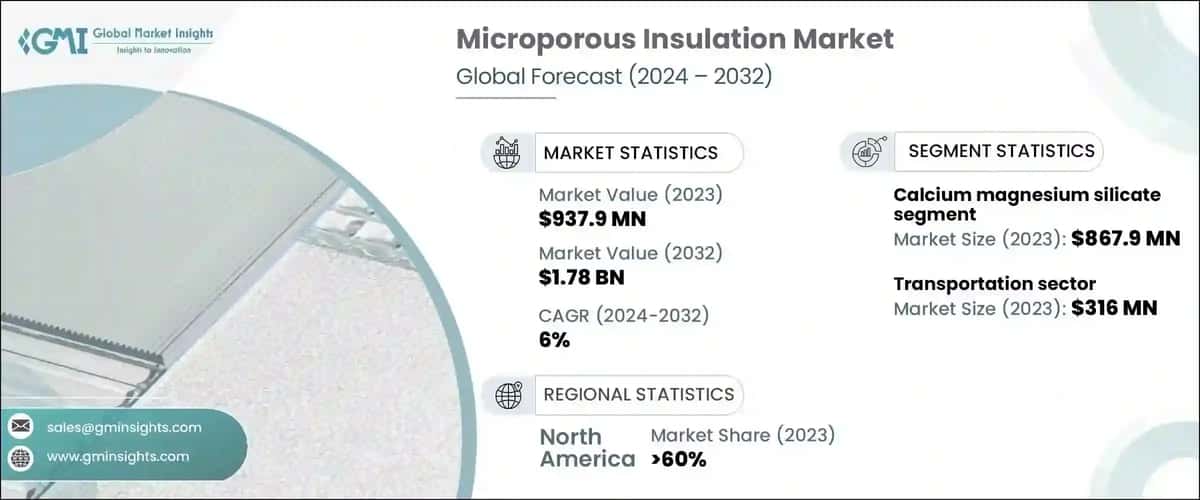Microporous Insulation Market was valued at over USD 937.9 million by 2023. It is expected to grow at a CAGR of 6% between 2024 and 2032. This growth is mainly due to increased demand from the automotive, aerospace, and transportation sectors in both developed and developing countries.