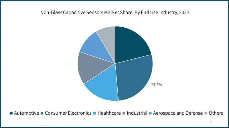 In the automotive sector, non-glass capacitive sensors are becoming essential components in modern vehicles, providing reliable and durable touch interfaces for infotainment systems, dashboard controls, and keyless entry systems. The ability of these sensors to perform effectively under extreme temperatures and vibrations typical in automotive environments makes them a preferred choice for enhancing vehicle functionality and user experience. This trend is further supported by the increasing adoption of touch-based controls and advanced driver assistance systems (ADAS) in vehicles. For instance, in April 2024, Microchip Technology Inc. has acquired VSI Co. Ltd., enhancing its automotive networking portfolio with VSI’s expertise in high-speed, asymmetric connectivity technologies and ASA Motion Link products. This acquisition strengthens Microchip’s capabilities in ADAS, digital cockpits, and camera/display connectivity, supporting growth in automotive radar, camera, and LiDAR modules driven by the expanding software-defined vehicle market.