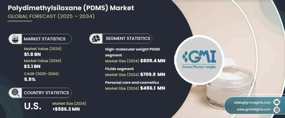 The global polydimethylsiloxane market was valued at USD 1.8 billion in 2024 and is estimated to grow at a CAGR of over 5.5% from 2025 to 2034.