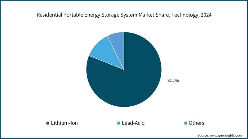 Based on technology, the industry is segmented into lithium-ion, lead-acid and others. The lithium-ion dominates the market with an 81.1% share in 2024 and is expected to grow at a CAGR of 24.1% from 2025 to 2034.
