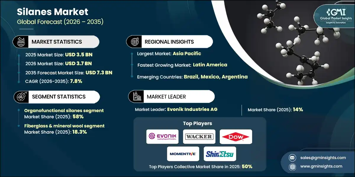 The global silanes market was valued at USD 3.5 billion in 2025. The market is expected to grow from USD 3.7 billion in 2026 to USD 7.3 billion in 2035, at a CAGR of 7.8% according to latest report published by Global Market Insights Inc.