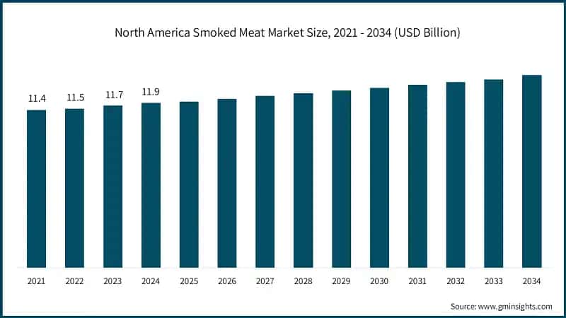 In the regional landscape, the North American smoked meat market is expected to grow at a CAGR of over 2.1% from 2025 to 2034. The market is most prominent in the U.S., with North America in general considered a well-established market. The region’s advancement in food processing technologies and growing interest in barbecue culture support this trend further.