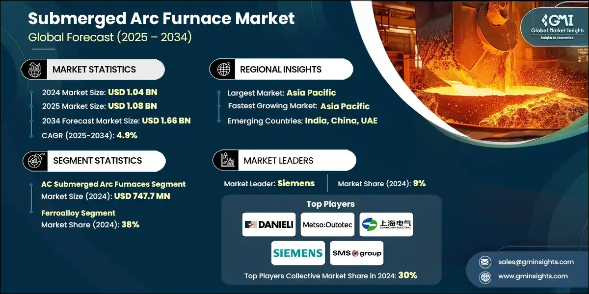 The submerged arc furnace market research report includes in-depth coverage of the industry with estimates & forecasts in terms of revenue (USD Billion) and volume (Thousand Units) from 2021 to 2034, for the following segments: