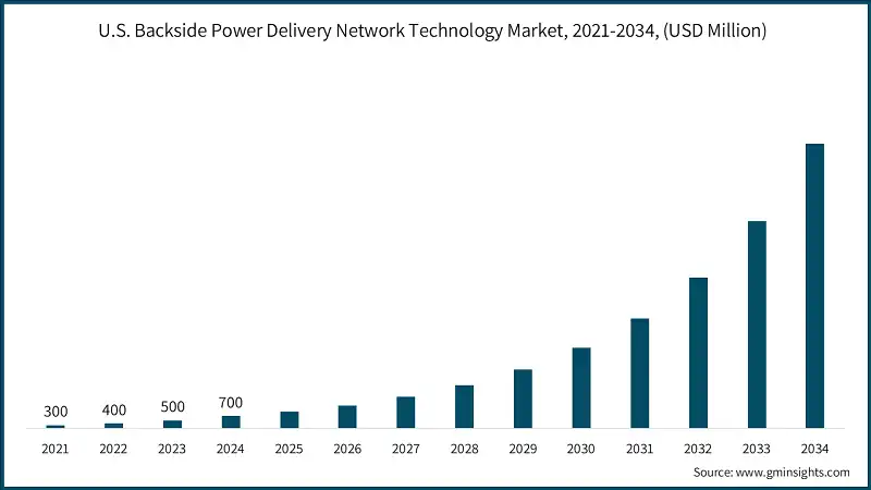 Рынок технологий сетевой доставки питания с обратной стороны в США оценивался в 300 миллионов долларов США и 400 миллионов долларов США в 2021 и 2022 годах соответственно. Размер рынка достиг 700 миллионов долларов США в 2024 году, вырос с 500 миллионов долларов США в 2023 году.