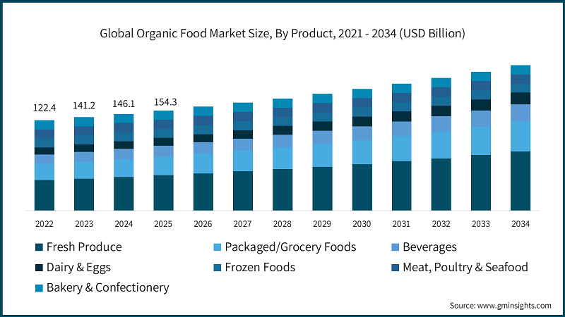 Рынок органических продуктов оценивался в 154,3 млрд долларов США в 2024 году и, как ожидается, вырастет с 168,2 млрд долларов США в 2025 году до 364,4 млрд долларов США в 2034 году, с темпом роста 9% в год, согласно последнему отчету, опубликованному компанией Global Market Insights Inc.