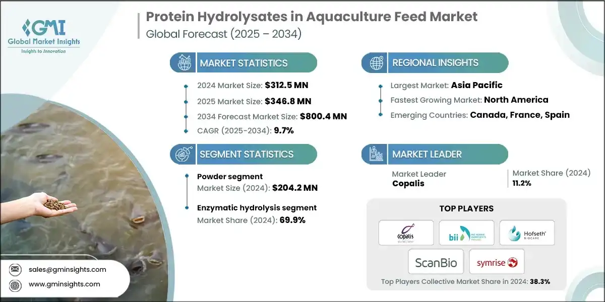 Размер рынка гидролизатов белка в кормах для аквакультуры - по форме, по процессу, по применению, прогноз роста, 2025-2034